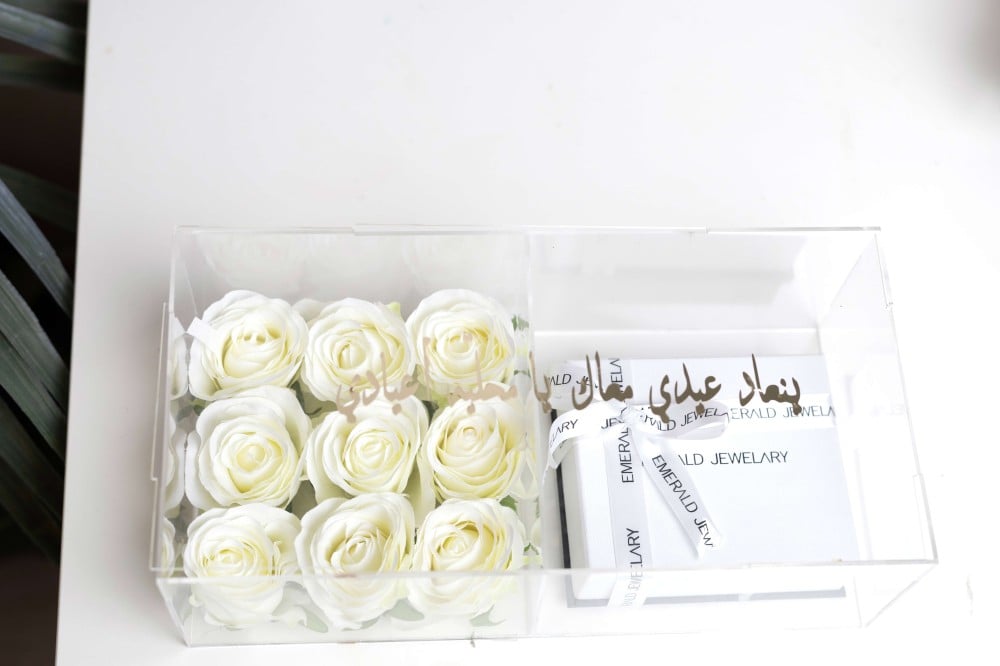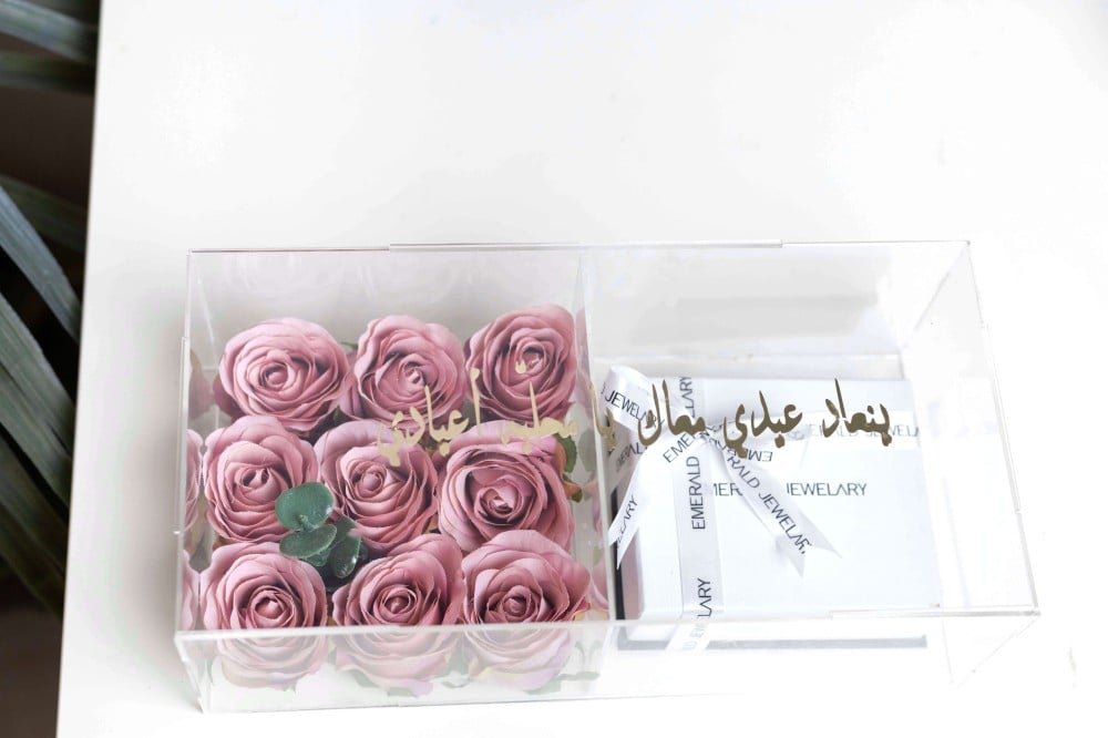 مكون من بوكس اكريلك وورد صناعي شبيه جدا بالطبيعي وبكواليتي عالي .