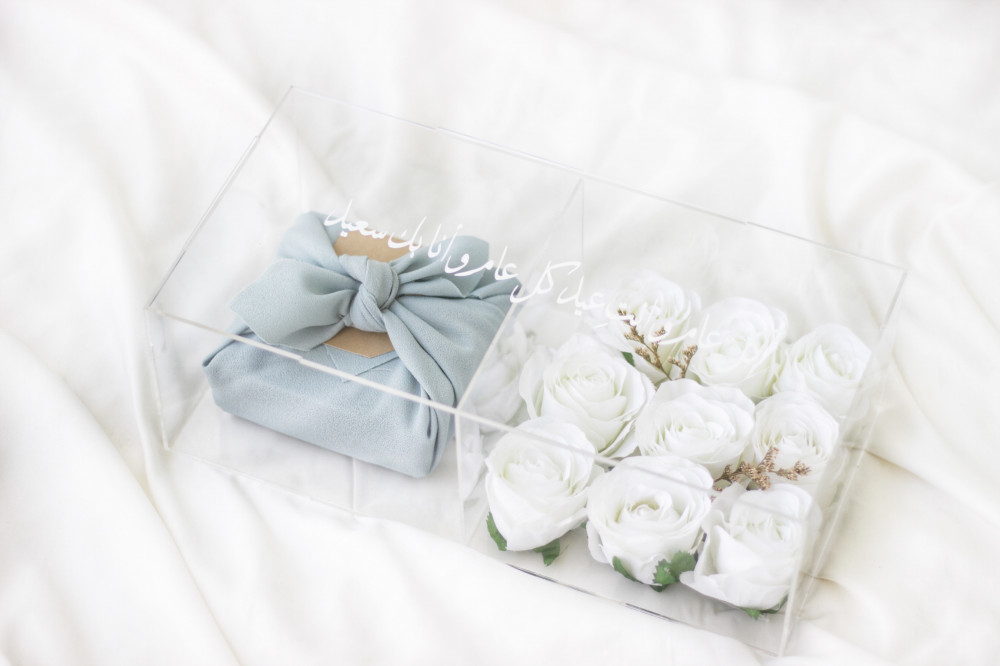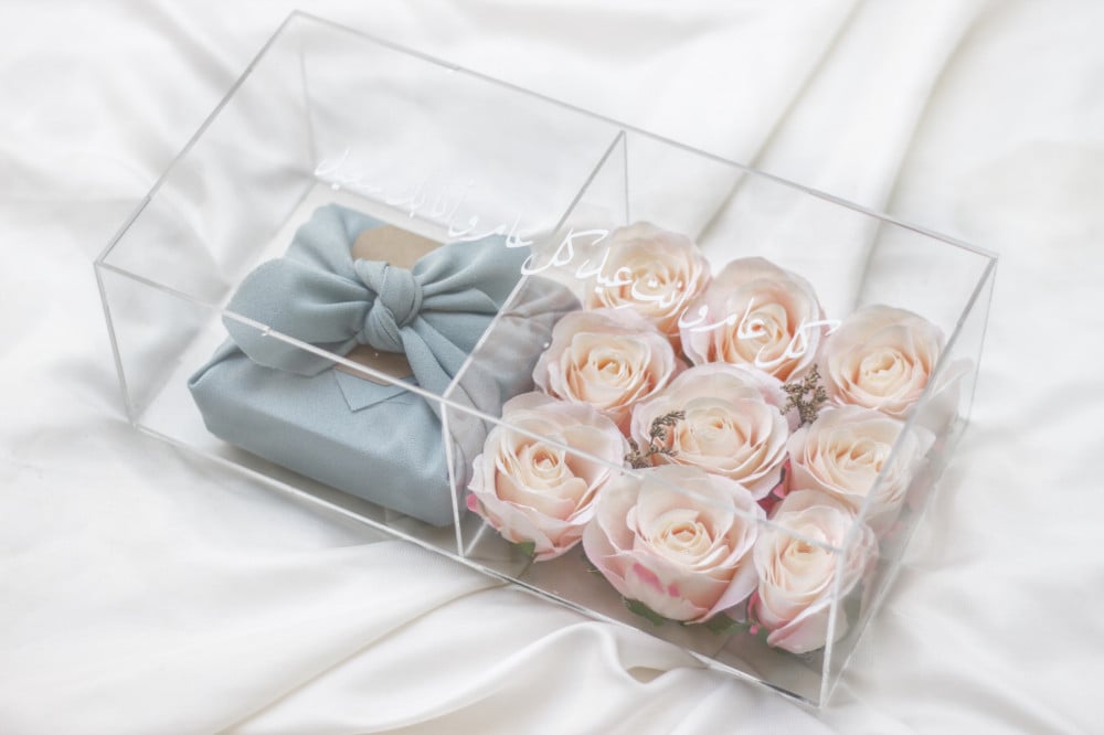 - نوع المنتج: بوكس هدية اكريلك مع ورد.